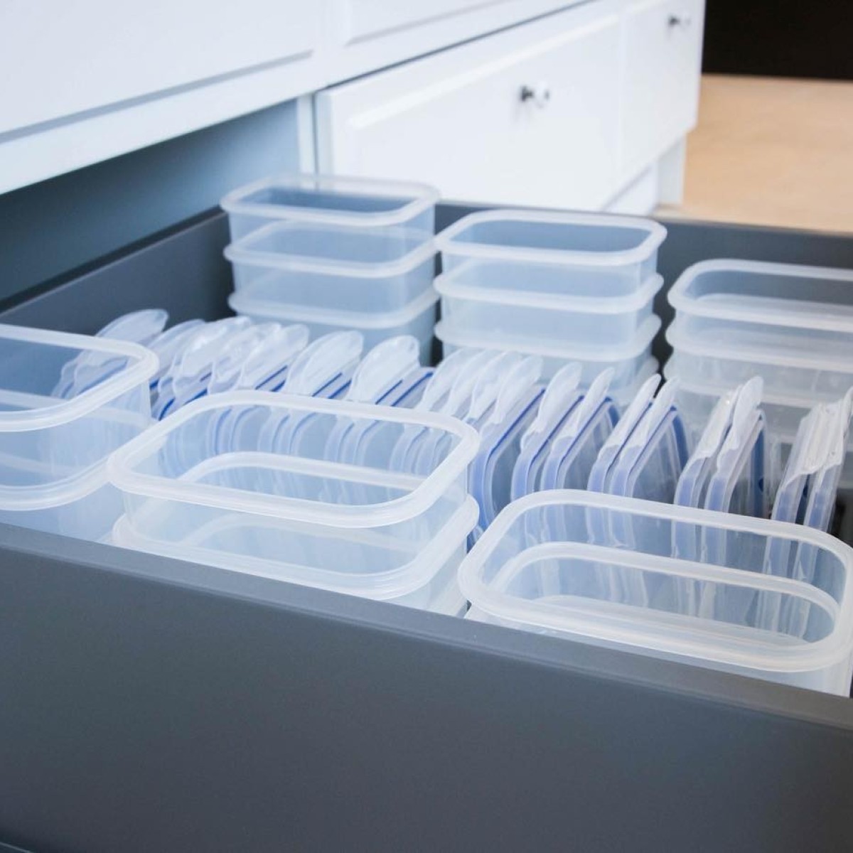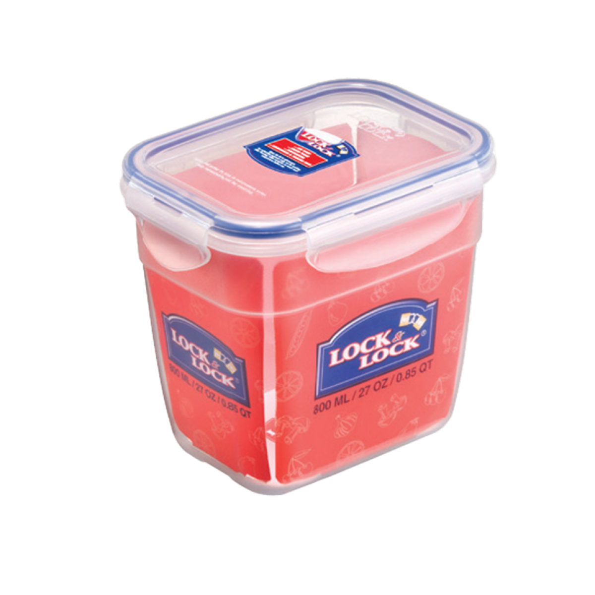 100% air- and liquid tight container, which characteristics are guaranteed by the specific patented four side interlocking technology. The container is made of translucent polypropylene (PP) that is BPA-free and can withstand temperature change from -20ºC~120ºC. For that reason the container can be used in the microwave (with an open lid) and freezer. Polypropylene also has an outstanding impact resistance. The design of the containers is aimed to help with space saving through stacking.