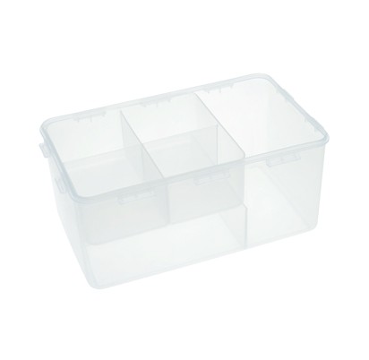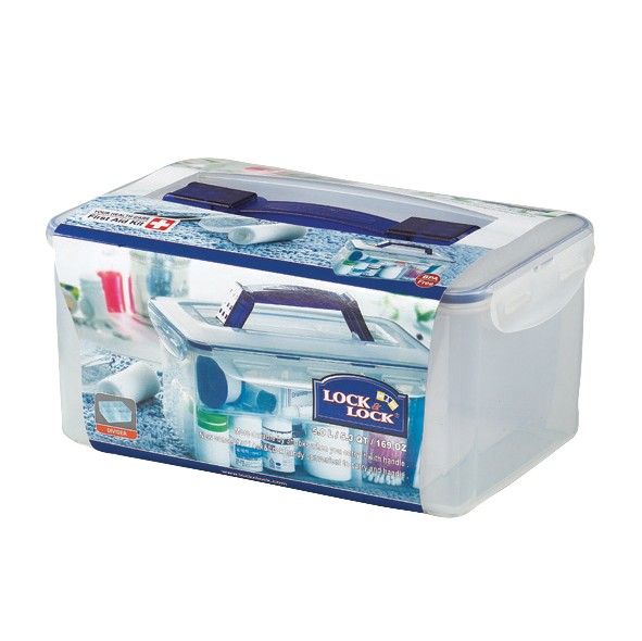 100% air- and liquid proof BPA-free first aid kit container with handle and dividers. The container has a comfortable four side interlocking system. The dividers help to keep the container neat and organized.